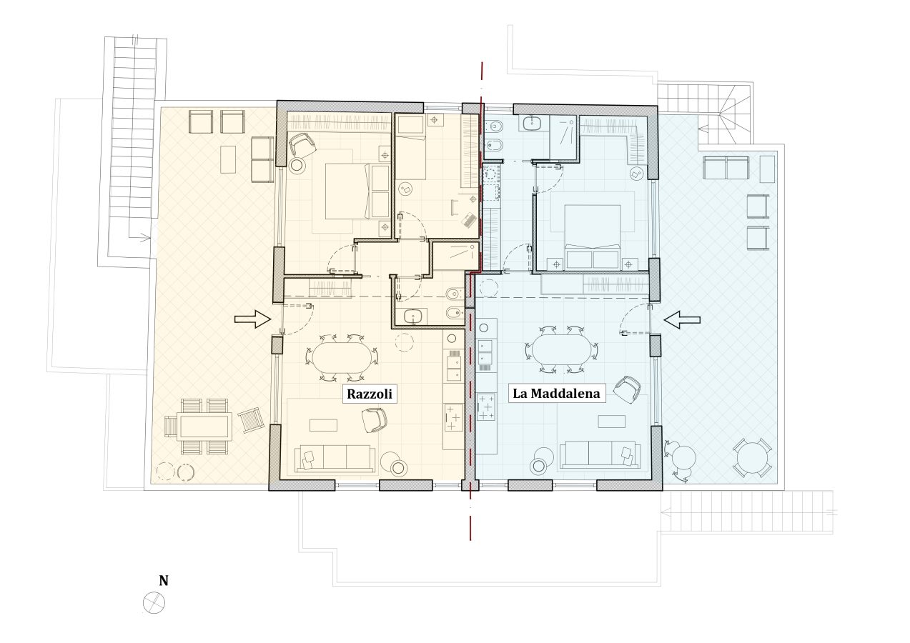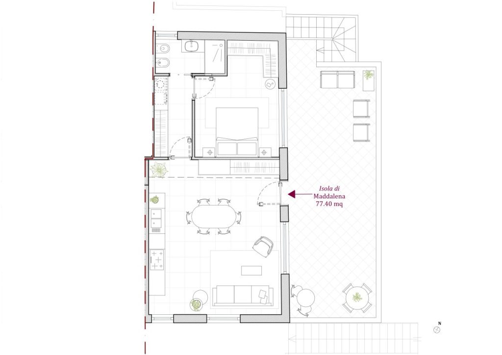 Vor die Haustür treten und sich inmitten der mediterranen Macchia wiederfinden, mit dem Gefühl, in einer privaten Oase zu sein: das ist das Ambiente des MISTRAL-Projekts. Gleichzeitig erreichen Sie in wenigen Gehminuten das Zentrum von La Maddalena mit seinen einladenden Restaurants, charakteristischen Geschäften und jener besonderen Piazza-Atmosphäre, die jeden Abend zu etwas Besonderem macht.
