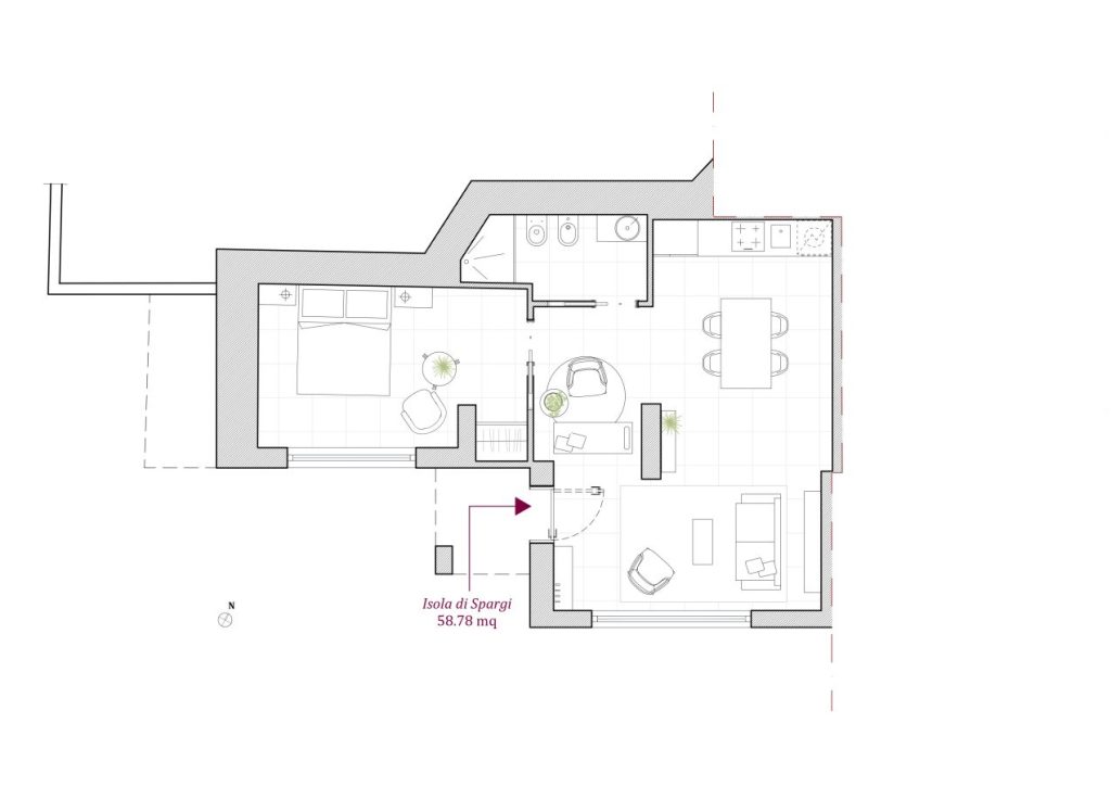 The apartment features a bedroom, bathroom, and an open-space living area, perfect both for seasonal personal use and as a rental investment. The living area integrates kitchen, dining, and lounge in a welcoming and well-lit environment. The finishes are high-quality, with selected materials and artisanally crafted details. The thermal and acoustic insulation ensures living comfort and energy savings. The private garden offers an ideal outdoor space for relaxing moments, with breathtaking views of the islands of Caprera and Santo Stefano. Just steps from the center of La Maddalena, featuring a functional spatial layout thoughtfully designed for optimal livability, Caprera represents an exclusive opportunity, exceptional for its quality and location, ideal as a secure investment or as a charming retreat in Sardinia